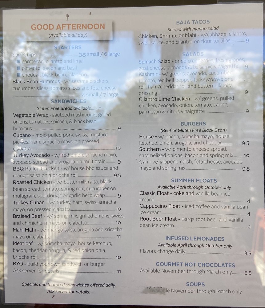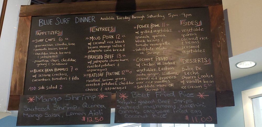 Introducing the menu at Blue Surf Cafe, a hidden gem in Wilmington, NC, offering a unique blend of New American cuisine with a focus on cafes and sandwiches. With a wide range of options, including vegan and vegetarian choices, this cafe is perfect for breakfast, brunch, and lunch. The diners rave about the Mahi & Shrimp Crema, Mojo Pork, and Tori Bowl, highlighting the creative flavors and fresh ingredients. The Elote Dip appetizer and Arugula Strawberry Salad are also popular choices for starters. Customers praise the quick and friendly service, along with the healthy options available. The relaxing vibe and fresh, non-processed food make Blue Surf Cafe a must-visit spot in the area.